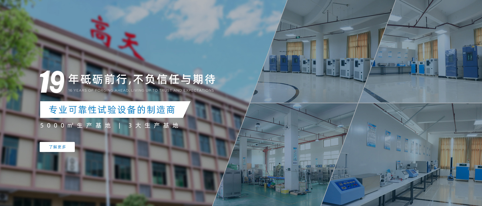 東莞市高天試驗(yàn)設(shè)備有限公司是一家可靠性試驗(yàn)設(shè)備的制造商,我們專(zhuān)注于可靠性試驗(yàn)已有19余年,在此期間,我們竭盡所能,努力為客戶(hù)提供完善的實(shí)驗(yàn)室規(guī)劃方案,匹配質(zhì)優(yōu)價(jià)廉的試驗(yàn)設(shè)備。高天擁有完整的研發(fā)團(tuán)隊(duì),其中有很多人都躋身試驗(yàn)設(shè)備行業(yè)多年,能為顧客提供完善的技術(shù)方案,以幫助廣大客戶(hù)在確保其產(chǎn)品品質(zhì)的前提下,有效降低經(jīng)營(yíng)成本,提升經(jīng)營(yíng)競(jìng)爭(zhēng)優(yōu)勢(shì)。高天生產(chǎn)的設(shè)備種類(lèi)眾多,同時(shí)擁有實(shí)用新型專(zhuān)利證書(shū),銷(xiāo)售范圍覆蓋全國(guó)。公司自成立以來(lái)堅(jiān)決以精美的外觀設(shè)計(jì),認(rèn)真務(wù)實(shí)的工作精神,良好周到的后續(xù)服務(wù),贏得了客戶(hù)良好的口碑。我們將一如既往,堅(jiān)持以“誠(chéng)信經(jīng)營(yíng)”為...